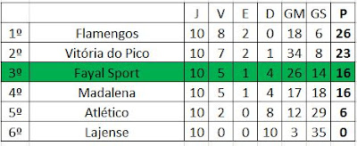 Com este triunfo, o Fayal Sport mantém a terceira posição, contabilizando agora mais três pontos em relação ao Madalena. Na próxima jornada, teremos um derby citadino, com o Fayal Sport a defrontar o Atlético.